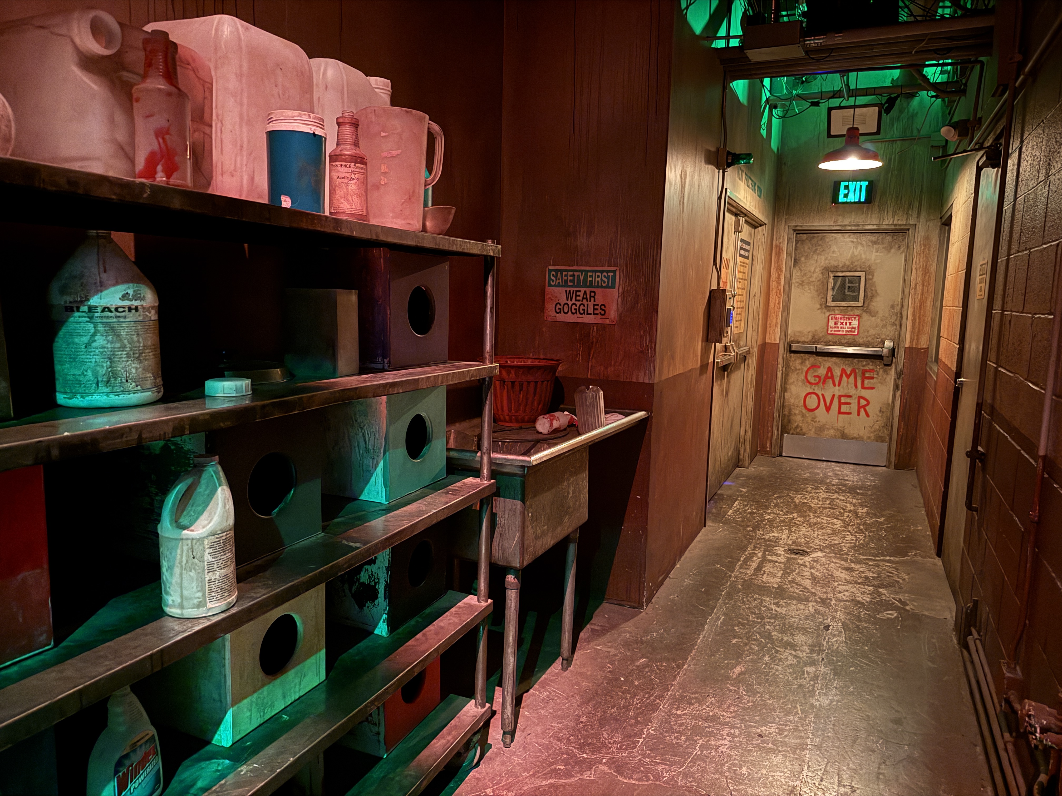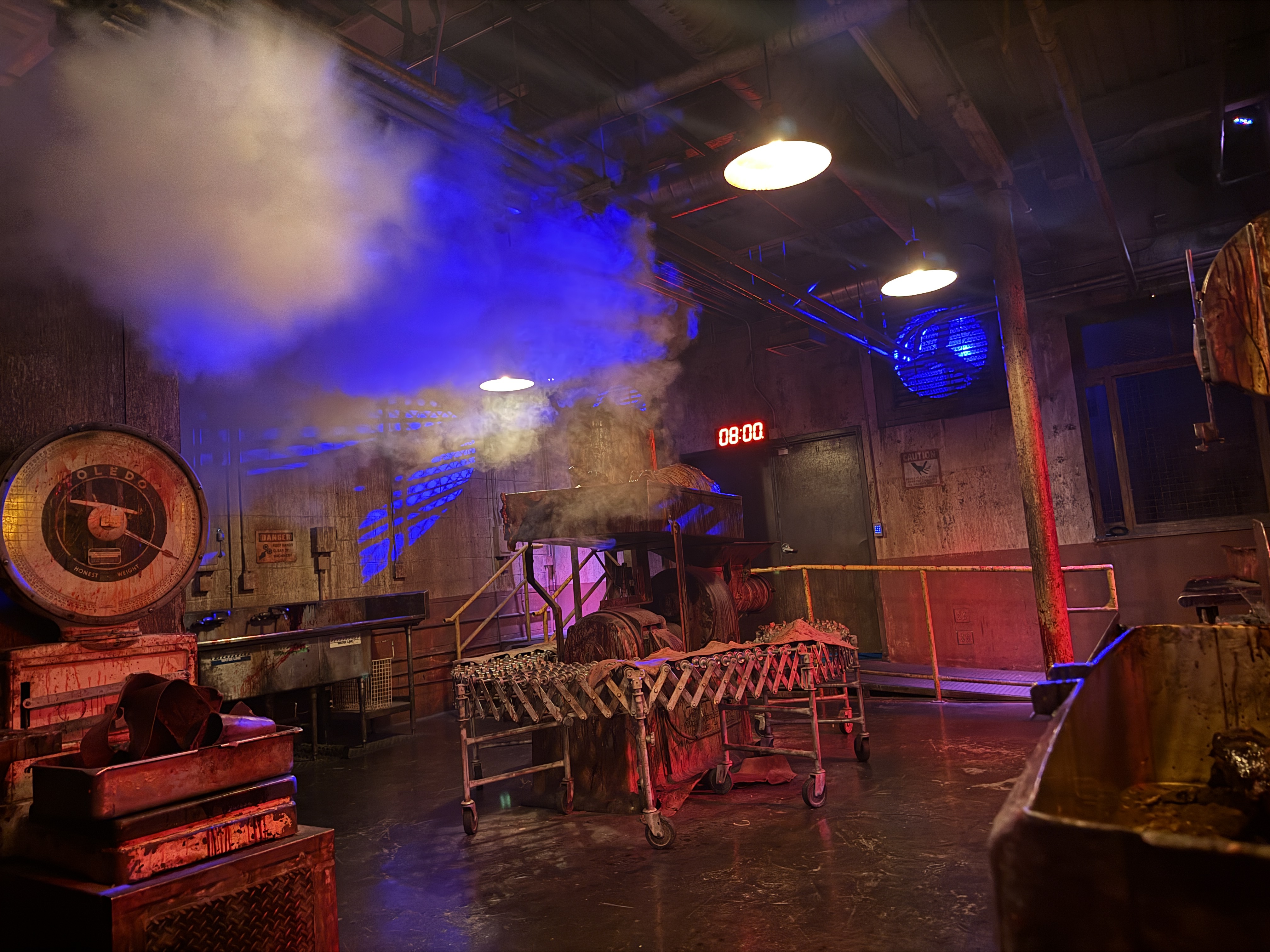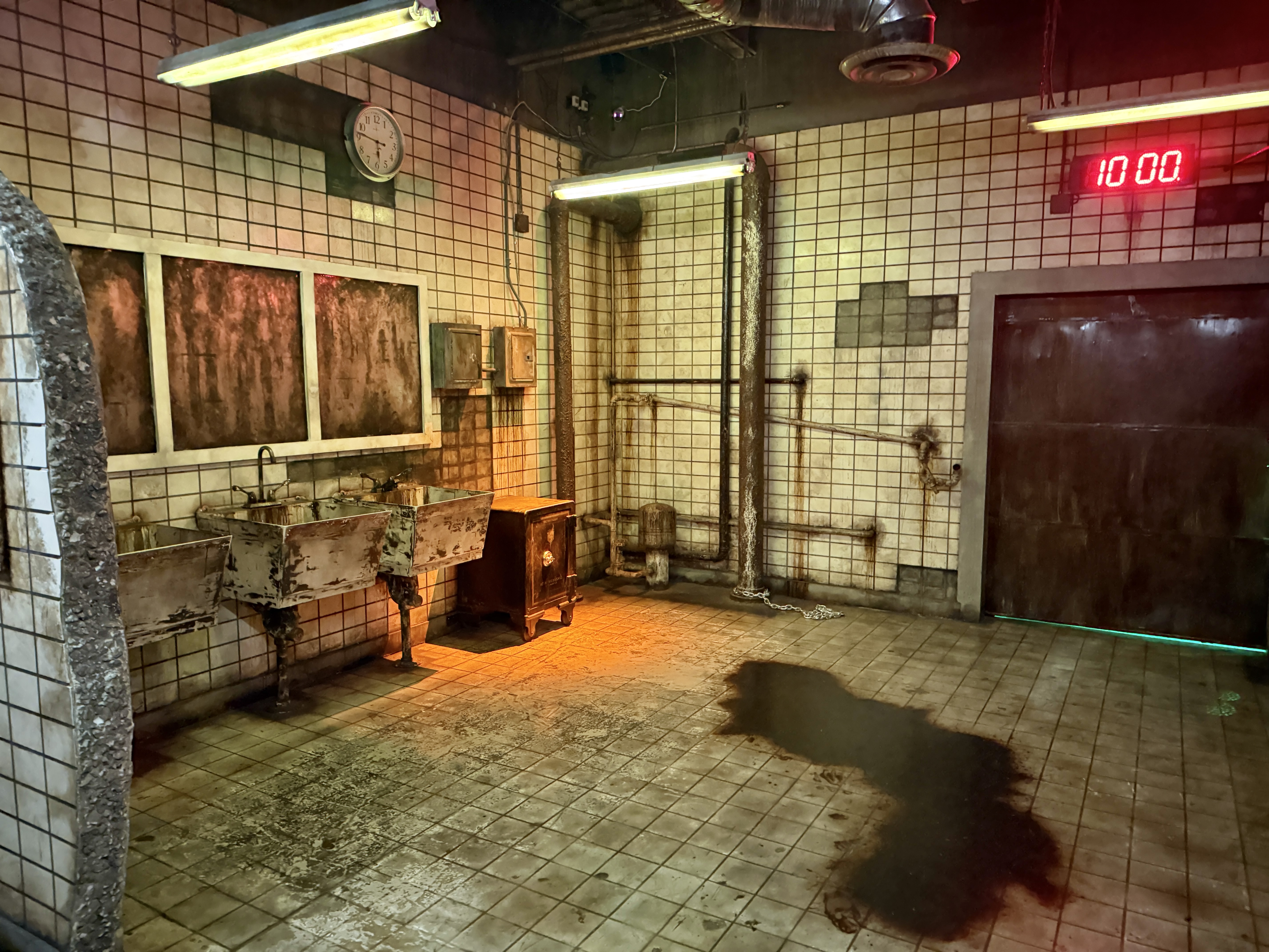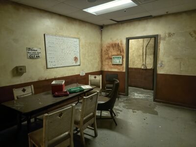 Without question, Jigsaw’s greatest masterpiece is how immersively stunning the scenic is throughout the old Egan & Co. Meat Packing plant – the location he chose to retrofit for his original game. The tour begins in the lobby, before giving eager meat aficionados exclusive access to back of house areas of the facility, including a rundown employee break area and their grimy adjacent locker room.