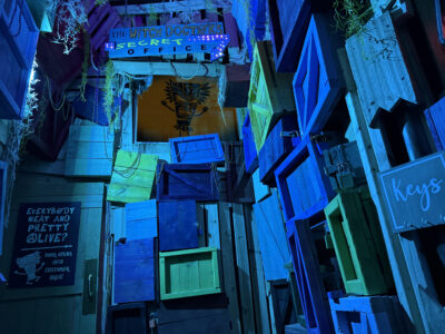 Being newly hired, Helpers enter through the Employees Only doorway that leads into the Witch Doctor’s Warehouse & Archives. It’s here that a wide variety of weird items are stored before becoming available for sale to all sorts of peculiar clientele.  The space is somehow equal parts small and vast; the sheer number of colorful crates stacked haphazardly up to the ceiling, seemly ready to topple at any moment, is enough to make even the biggest trolls feel small. (Luckily, the trolls don’t shop during regular business hours.)