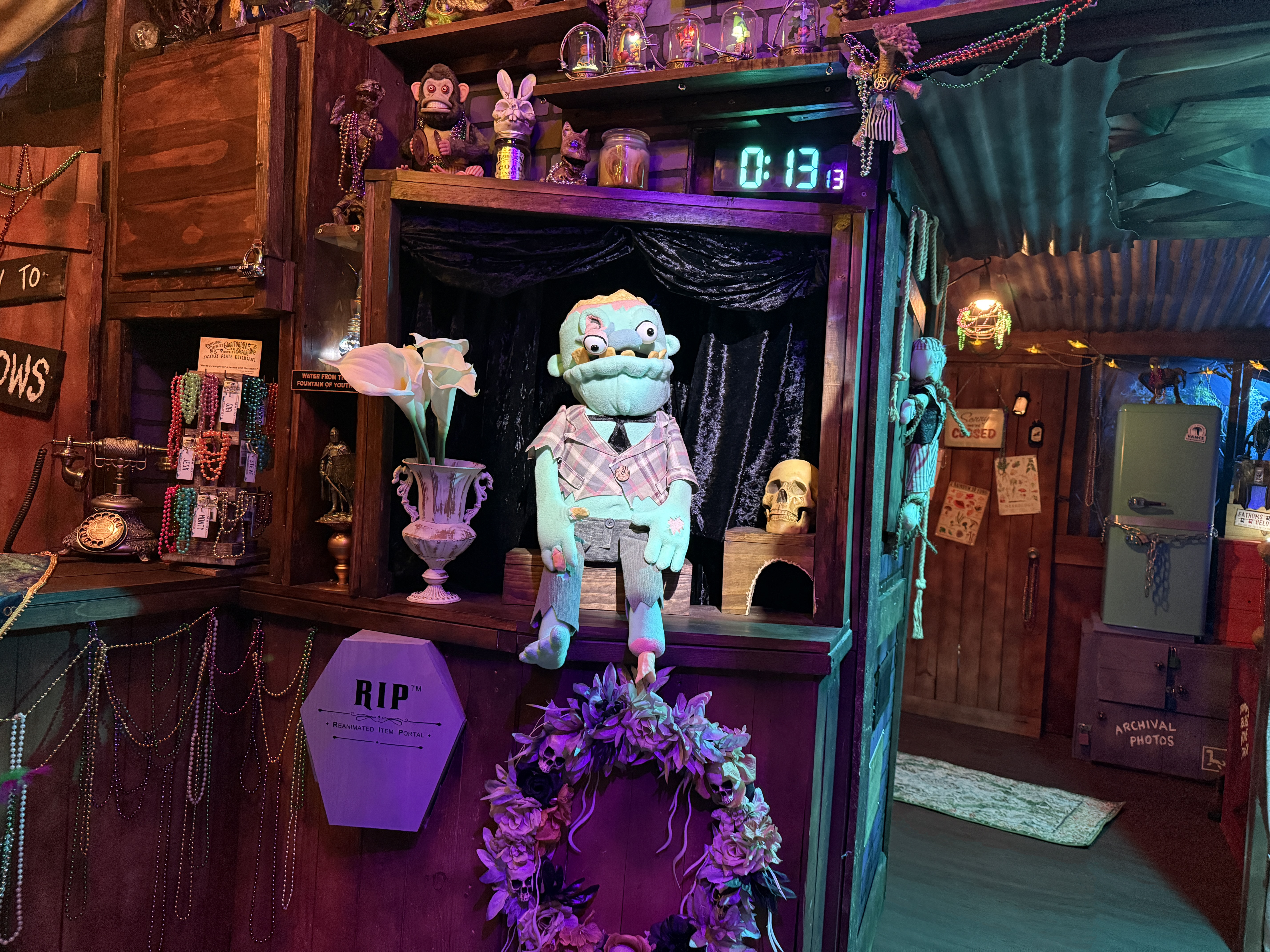 The Zombie and the Witch Doctor was first envisioned as the, ahem, spiritual successor of another highly popular Chris + Creative game design, Professor Bleehall’s Odditorium Emporium & Pie Shoppe. OddPie, as it’s often known for short, is the world’s first Create Your Own Adventure game, wherein every puzzle is a stand-alone challenge that can be completely in any order (or not at all) during a 60-minute score-based shopping spree. Since its debut in 2019, OddPie has been one of Chris + Creative’s most acclaimed games, so capturing that lightning in a bottle one more time became an important mission statement for the development of this new experience.